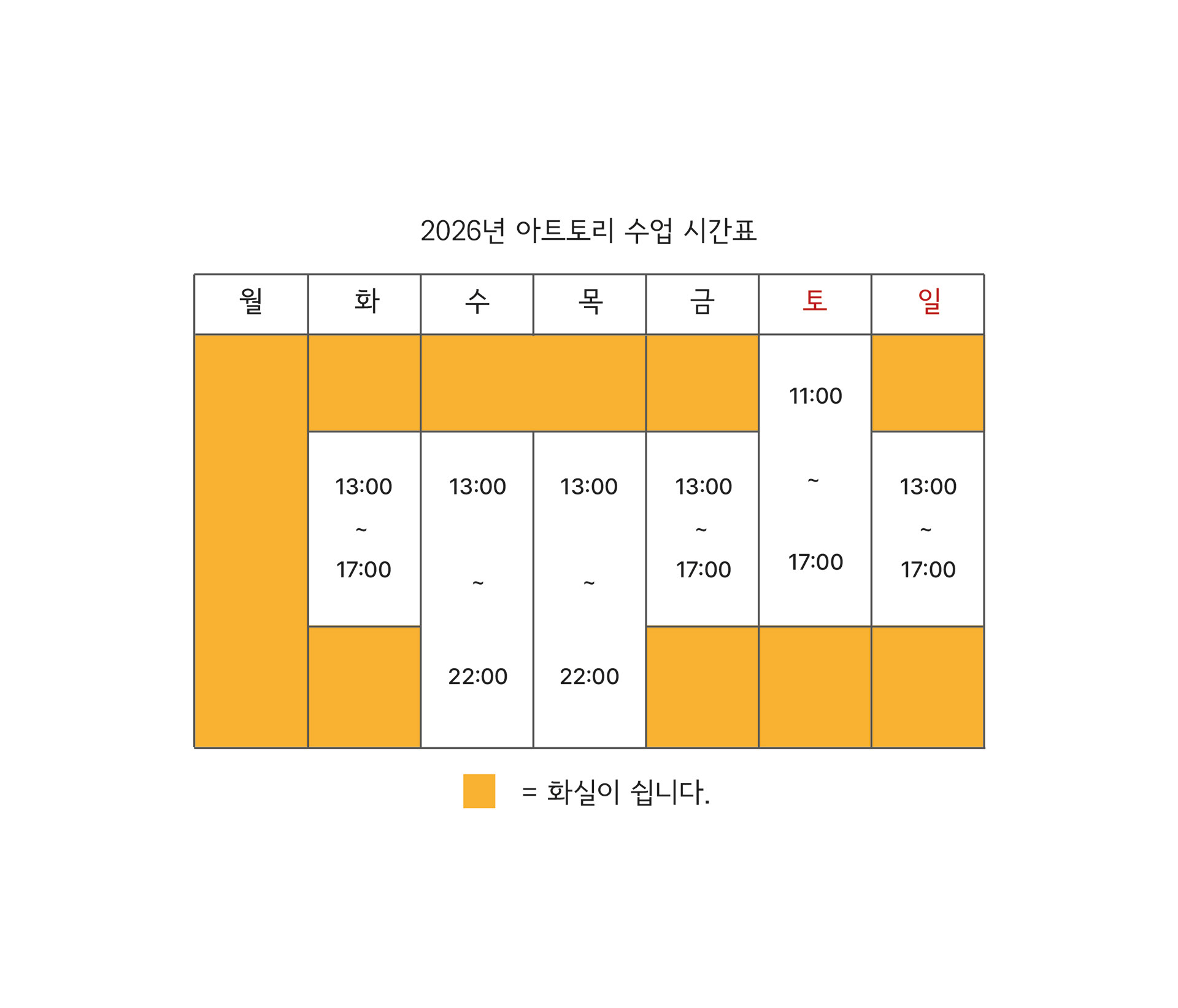 (수업일에는 수업시간 이외에 이용이 가능합니다.)